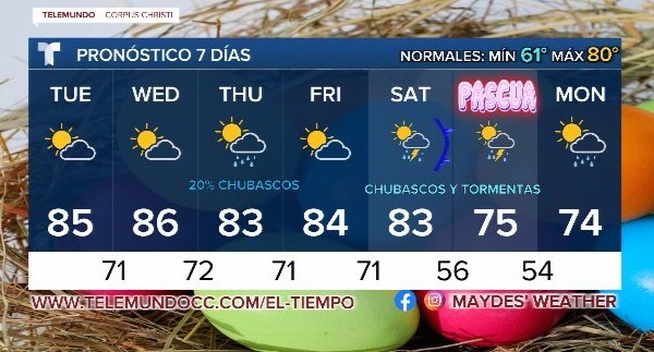 Durante esta semana dos frentes serán responsables de la inestabilidad que provocarán las lluvias de estos días. Un frente débil el miércoles no cruzará completamente nuestra zona y otro frente más fuerte si se prevee cruce el sur de Texas el sábado. Las probabilidades de lluvia serán mayores cerca del frente, pero, como ocurre con muchos sistemas frontales, dependerá de dónde se encuentre exactamente el frente.