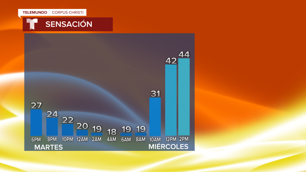 Vientos: Dirección desde el Norte 14 a 17 mph. Rafagas hasta 22 mph